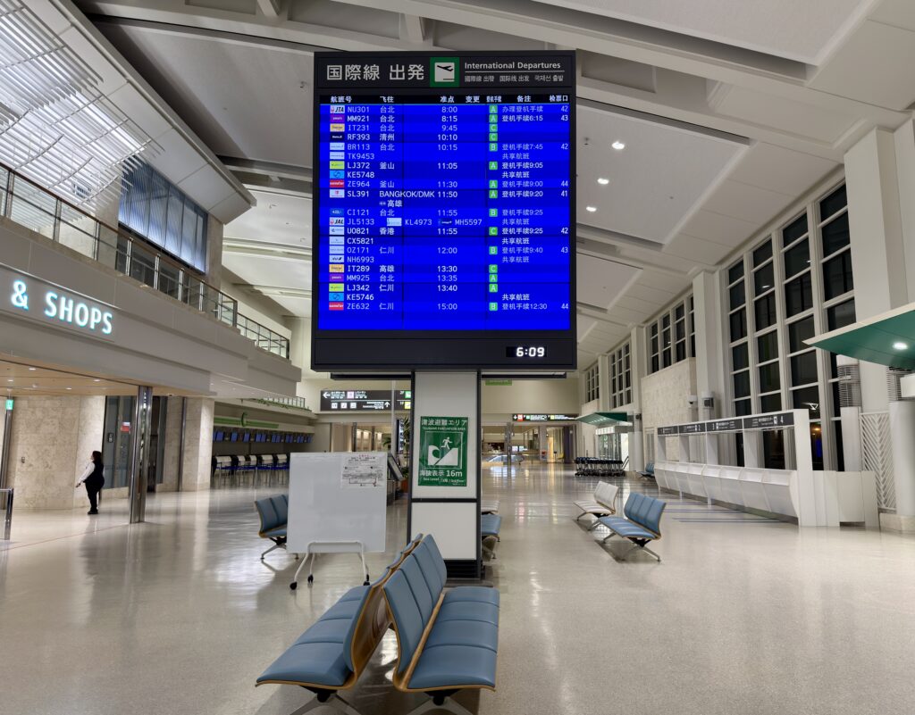 那覇空港から海外へはそこそこ飛んでいるのですが、早朝すぎました。