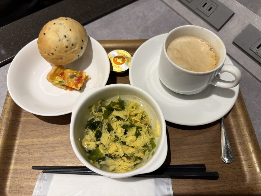 人の少ないラウンジは快適。早起きのご褒美です。