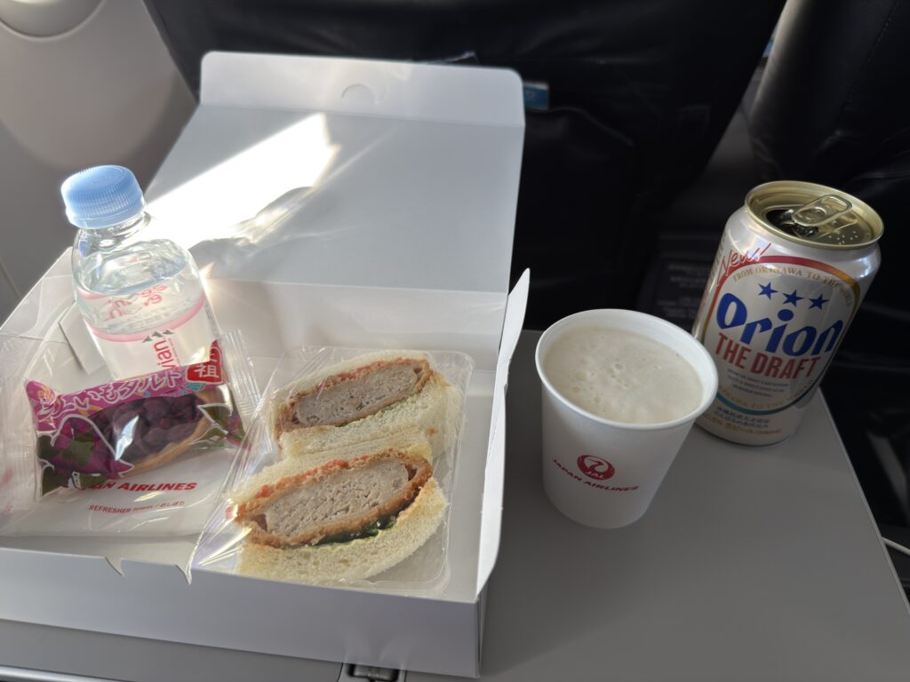 シートベルトサインが消えるとすぐに、お弁当もとい機内食が配られます。